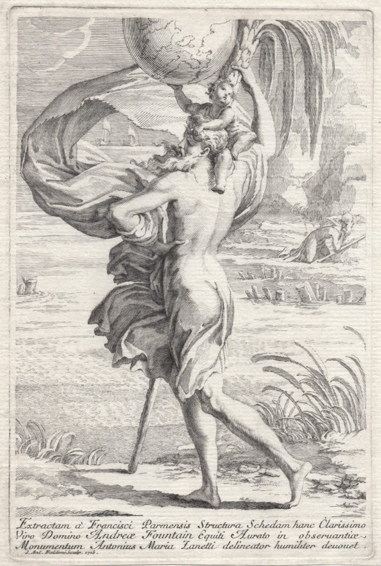The print here is a 1st state. Bartsch does not describe any other, however, a 2nd state was released by Antonio Salamanca with his publishing address engraved at the end of the draping (bottom center). Salamanca, also based in Rome, started publishing Veneziano's prints from 1530 onwards, 10 years after Raphael passed away.