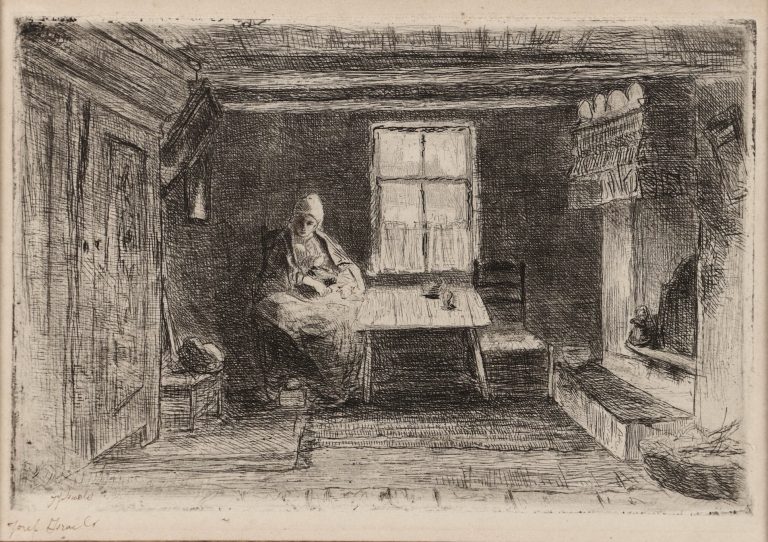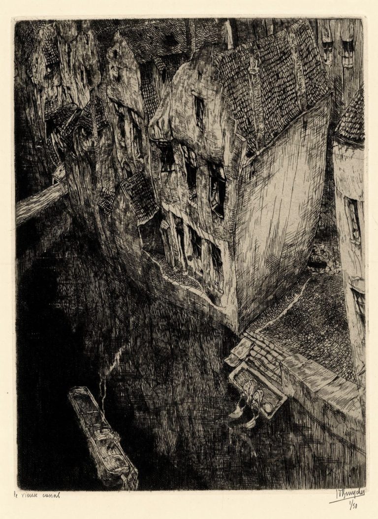 Art Depot Olieslagers holds many other works by Belgian's greatest engraver during the first half of the 20th century, including a unique artist proof of La Ruelle which Jules de Bruycker presented to his wife Raphaëlle, celebrating their decennial in 1929. He added the inscription 'a Raphaëlle de Bruycker' bottom center, between title on the left and signature on opposite side. La Ruelle, created in 1906 long before their marriage in 1919, remained one of her favorites.