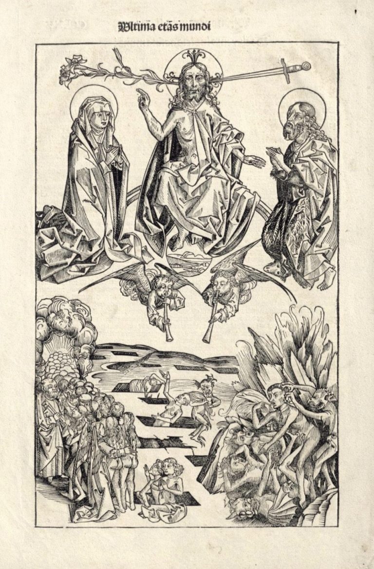 Art Depot Olieslagers holds several other Liber Chronicarum folios from the primary run in which the paper embossing, by fresh and unworn movable types, is still present over 500 years after the late medieval era passed. An early impression of the genre-defining Imago Mortis, with the upper section of the right border line intact, is reposited as well.