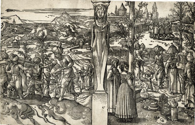 Hans Holbein (II), who became the leading artist to the court of Henry VIII following recommendations by the Dutch humanist Desiderius Erasmus, created many woodcut designs, most famously his celebrated interpretation of the Dance of Death. The woodcut presented here harbours his interlaced HH monogram, a rarity on its own.