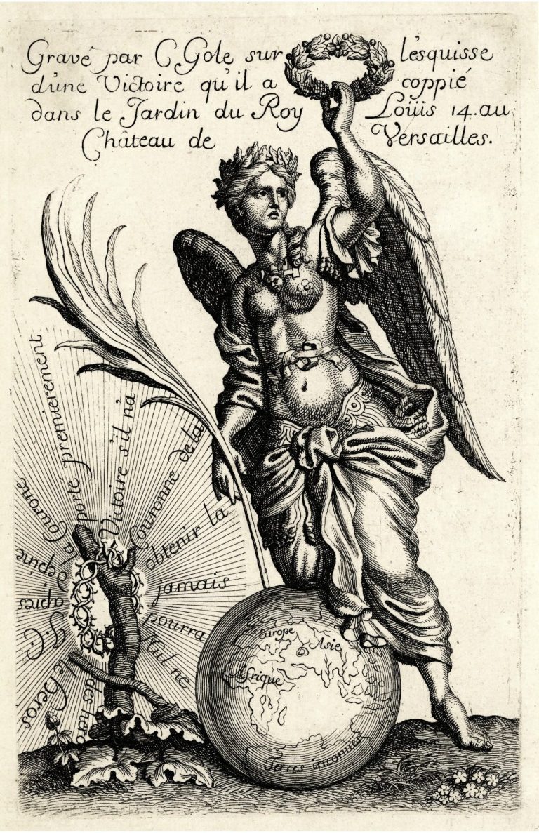 Engraved from a sketch in the garden of Sun King Louis XIV at the Palace of Versailles.