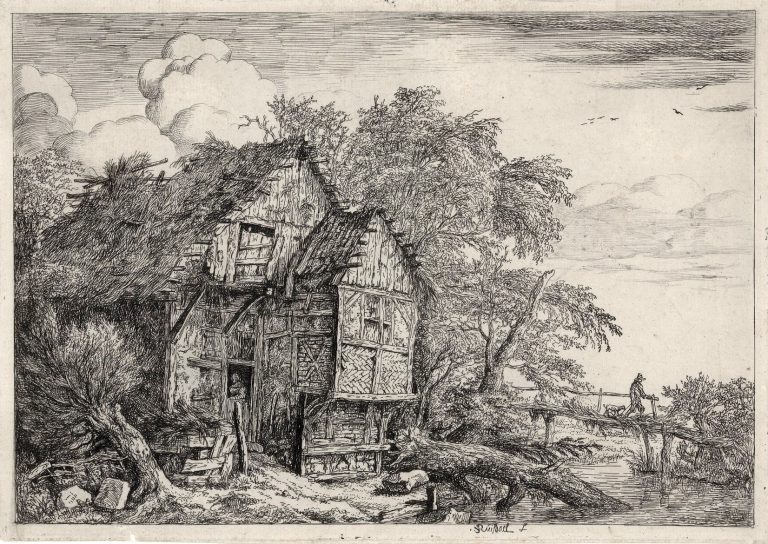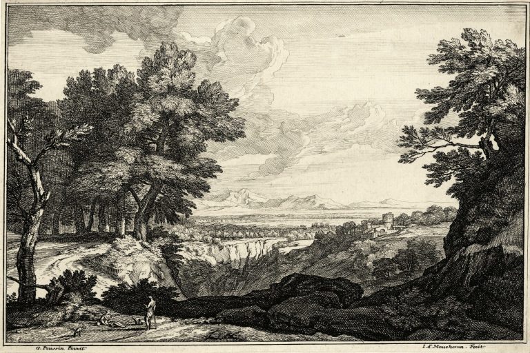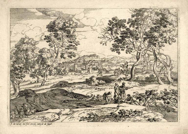 An extremely dark proof missing various etch lines compared to Hollstein Dutch 49-1(2). The 2nd and final state was brought about through addition of Wtenbrouck's signature in the bottom left boulder. Hence, this particular impression has yet to be recorded in Hollstein.