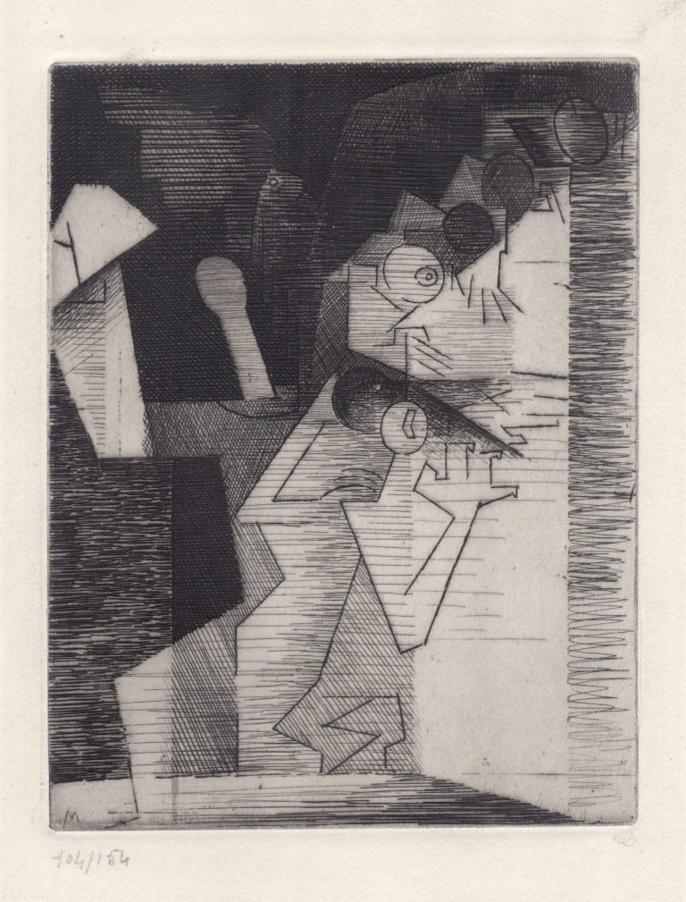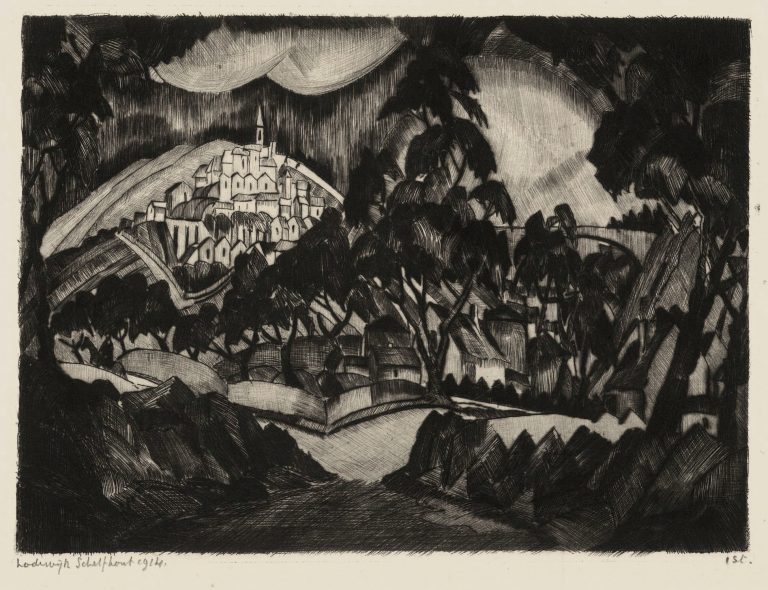 This drypoint on zinc by Lodewijk Schelfhout splendidly captures the essence of Georges Braque's 1908 and Henri Le Fauconnier's 1911 landscapes in monochrome, validating his title as the first Dutch cubist.